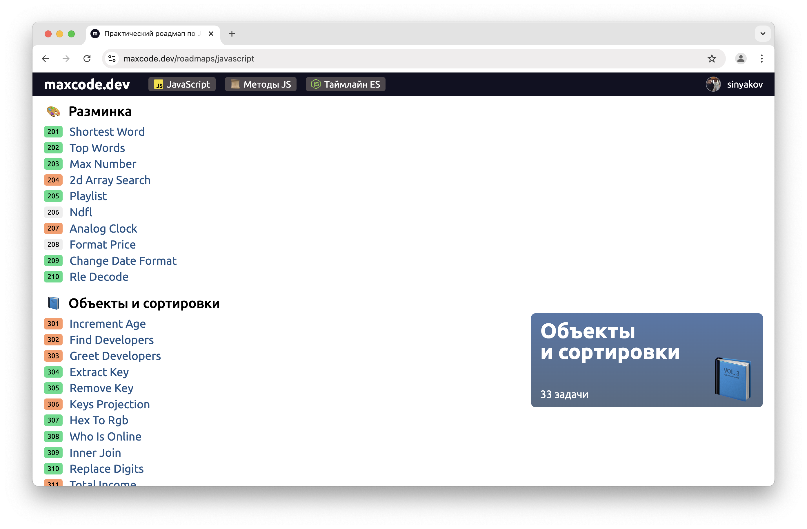 Лучше ориентироваться на Список задач по JavaScript, в котором задачи сгруппированы по темам и идут по увеличению сложности.